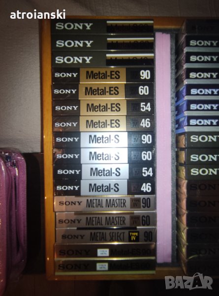 Запечатани аудио касети SONY - японски и американски пазар. Колекция от почти всички метални и хромни аудио касети висок клас на фирмата правени в периода 1980-1990 година. Подходящи предимно за колекция, но стават и за запис .. :-) Всичките 32 касети се продават заедно в дървена кутия! При покупка на всичките касети, подарък 1 бр. SONY SMM 60 min. :)
