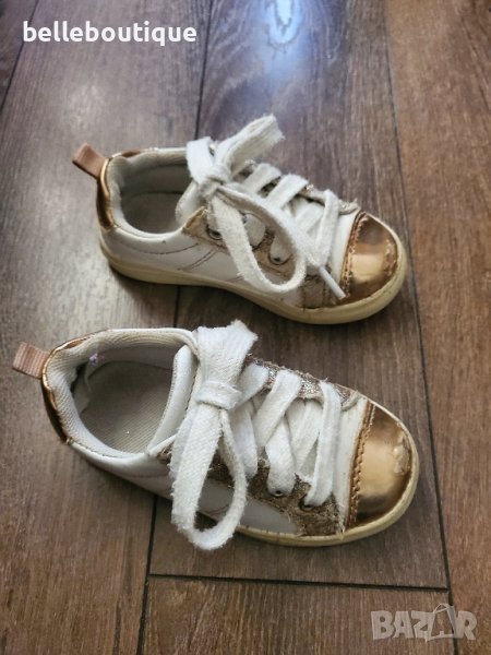 Страхотни изключително удобни детски маратонки за момиченце Primark, 21 номер. Цвят - бял със златист брокат. Маратонките са със следи от употреба, които се виждат от снимките.