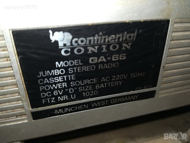 CONTINENTAL CONION GA-66 MADE IN WEST GERMANY-НОВ ВНОС РАБОТИ НА КАСЕТА ШУМИ НА УКВ МЕСТИ МНОГО МАЛКО ЗА СТАНЦИИТЕ-ВЪЖЕТО Е ЗАТЕГНАЛО-СТАРА ТЕЖКА ИСТИНСКА МАШИНА С ДВЕ АНТЕНИ И В ЛОШ ВИД-НЯМА КАПАК ЗА КАСЕТАТА И ЗА БАТ ОТЗАД-ЗДРАВИ ЛЕД ИНДИКАТОРИ И ХУБАВ ЗВУК-КРАЙНИ ЦЕНИ.ПАЗАРЛЪЦИ НЕ! пращаме със спиди или еконт с преглед и тест след превод на капаро за куриерската услуга поради зачестили некоректни потребители-поръчки само тук в саита! по телефона и със смс не! краини цени! бартери не правиме! ПАРИ НЕ ВРЪЩАМЕ! всеки ден нови неща-още 2-3 наши обяви тук
