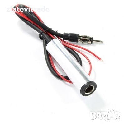 Универсален 12V усилвател за автомобилно FM радио. Свързва се лесно към радиото и към захранването на колата.