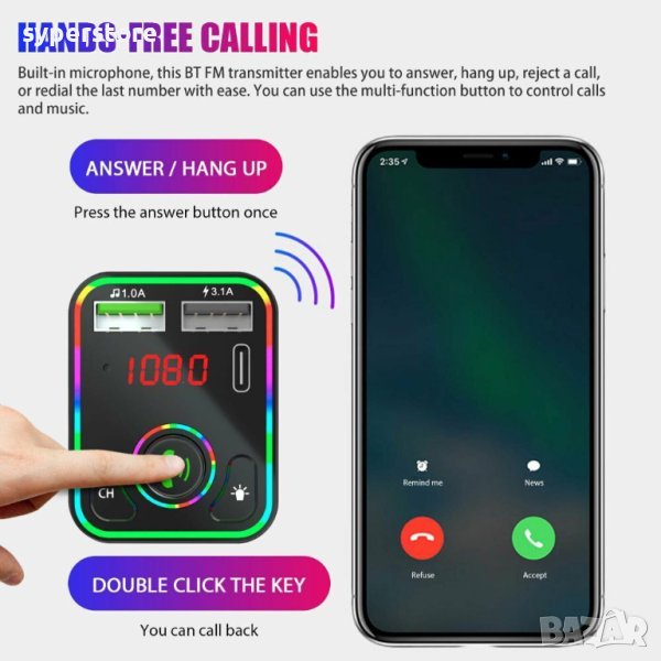 7 цветна версия с LED подсветка: Този BT радиопредавател поддържа 7 цвята светлина с LED подсветка; Освен това улеснява работата и безопасното шофиране при шофиране през нощта.