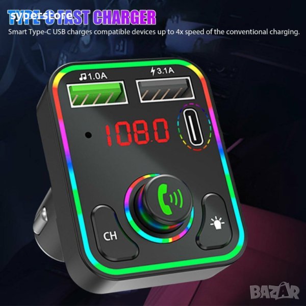 FM трансмитер Блутут Digital One SP00881 F3 Bluetooth v.5.0 + USB 3.1A /12-24v/Fast Charging/Type C/