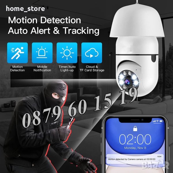 Подходяща за скрито видеонаблюдение, наблюдение на дома,офиса или търговски обекти.Куполна камера тип крушка работи в дневен и нощен режим, което я прави незаменим помощник за контрол.Работи с мобилно приложение YCC 365 подходящо за iPhone и Android. Куполна камера тип крушка е изключително лесна за монтаж.