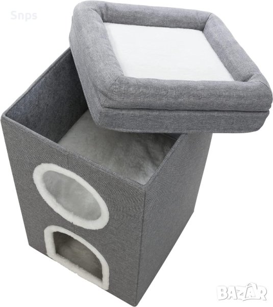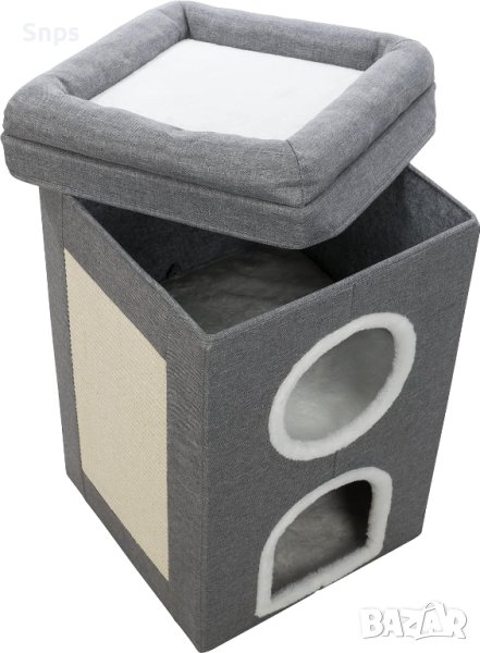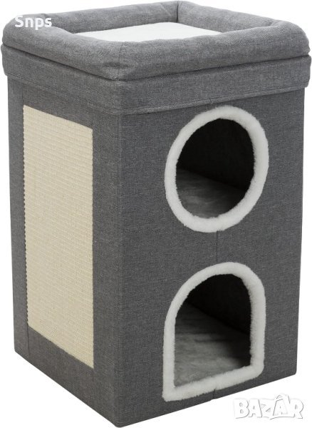 Развъдникът за котки TRIXIE Saul ще задоволи инстинктивната нужда на вашата котка от игра и почивка. Това атрактивно кубче за коте на 3 нива разполага с повдигнато плюшено легло с меки странични стени. Голямата подложка от сезал дава на вашата котка здравословен ход за инстинкта им за драскане, тя може да тренира лапите им върху сезал и да защити вашите мебели. Когато дрямка или скривалище е наред, има две уютни скривалища, които осигуряват безопасност и сигурност, докато вашата котка спи удобно. Плюшената вътрешна облицовка лесно се отстранява за почистване на място и позволява кубът да се съхранява плоски за удобно съхранение.