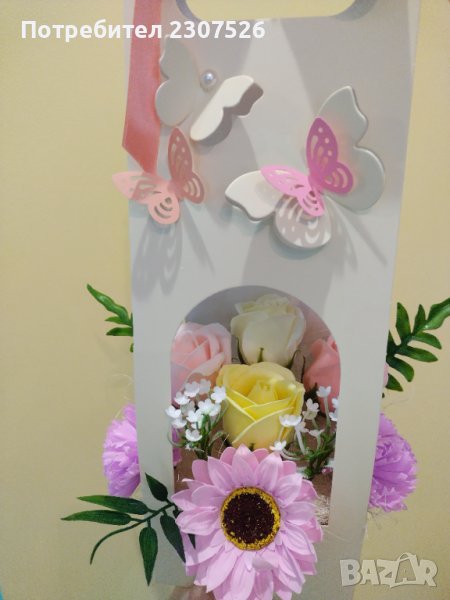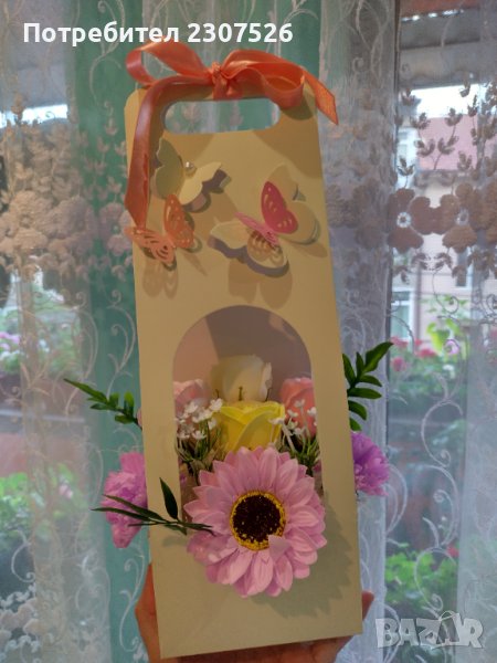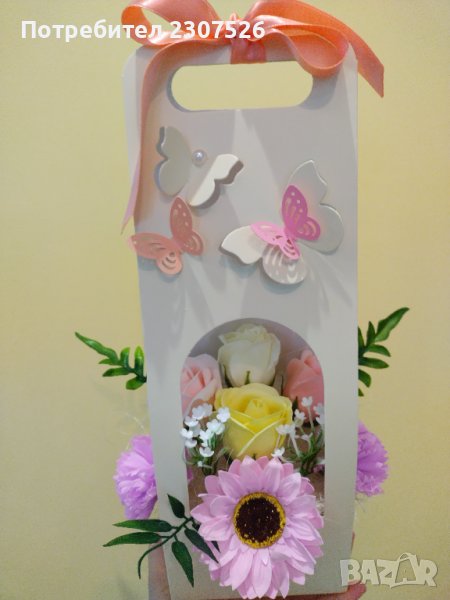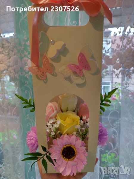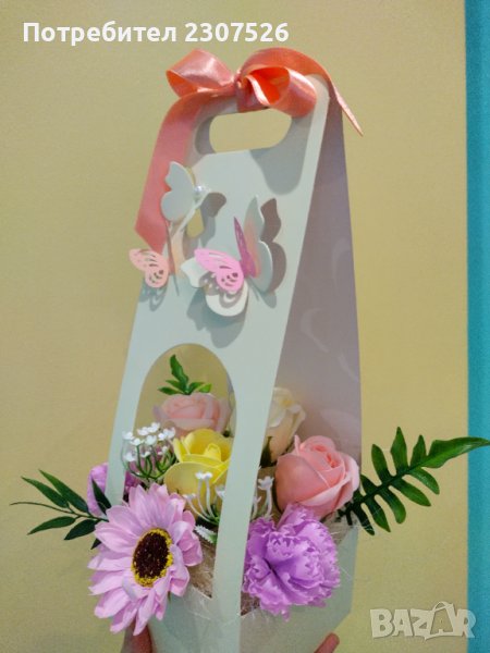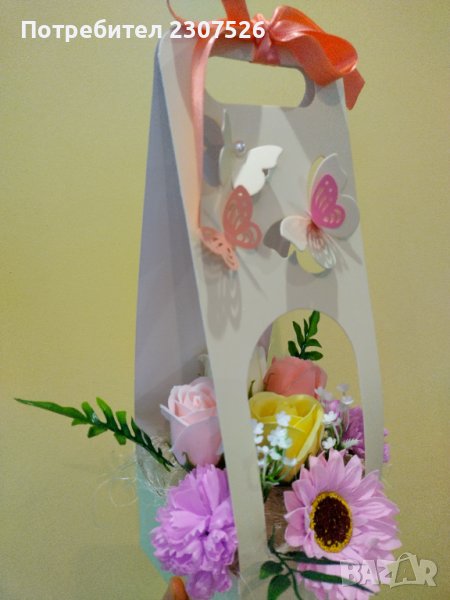 Картонена чантичка с вечни ароматни пластични сапунени цветя! За всякакви поводи!