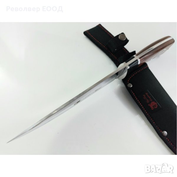 Масивен ловен нож с острие тип Full Thang т.е. продължава по цялата дължина на дръжката, което гарантира здравината на ножа.