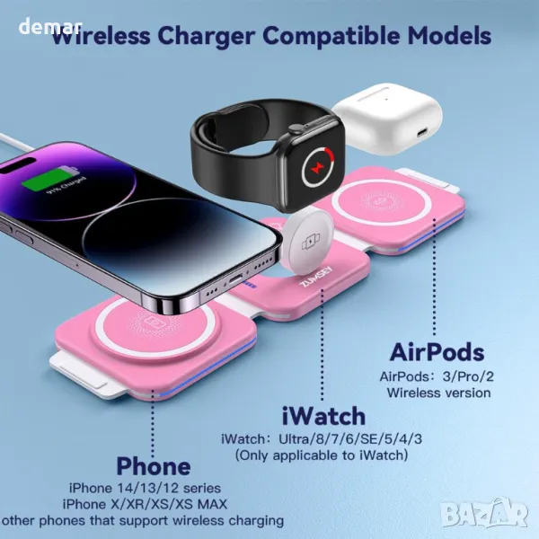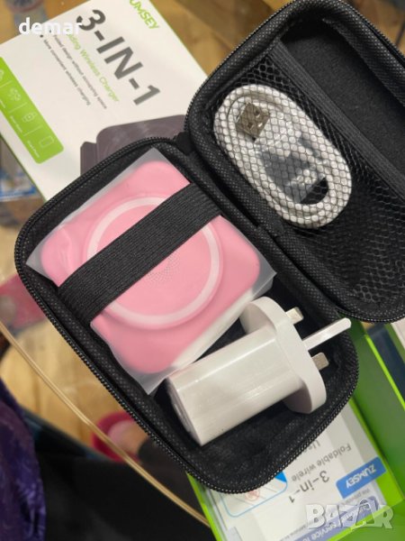 ZUMSEY Сгъваемо безжично зарядно устройство за пътуване, 3 в 1 - розов
