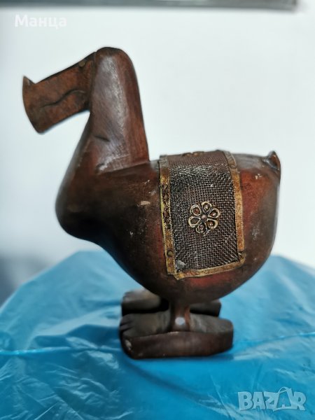 Стара, дървена фигура с меден обков. Размери 12/12 см. Произход Северна Африка.