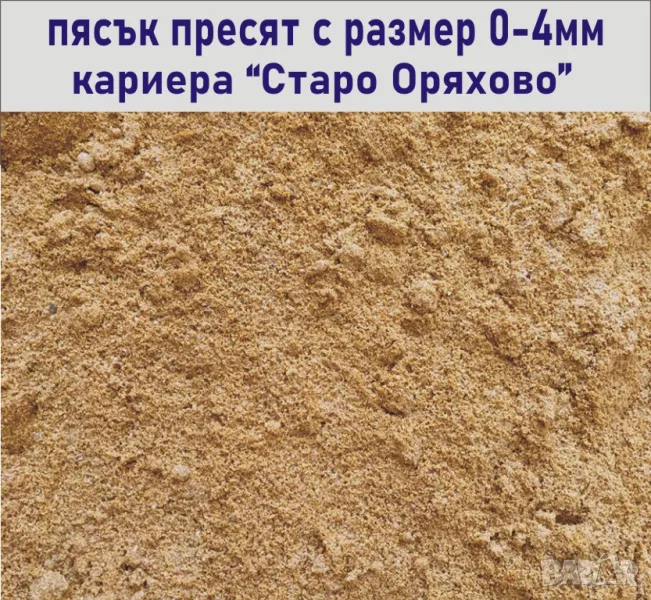 Пресят и измит Пясък с размери 0-4мм. от кариера Старо Оряхово
