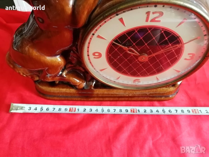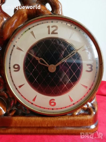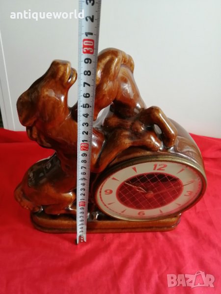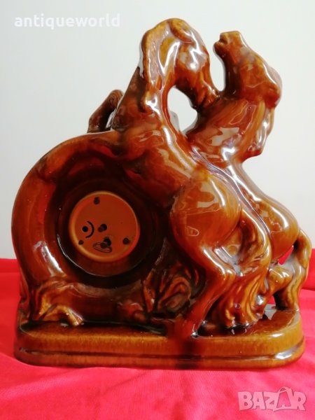 Красив Стар Немски Механичен Порцеланов Настолен ,Каминен Часовник КОНЕ. Работи отлично.
