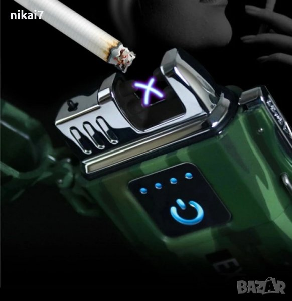 Електрическата импулсна запалка е абсолютна новост. Устройството работи на съвсем различен принцип от обикновените газови, бензинови или електронни запалки с пружина с нажежаема жичка. Между два контакта (като при кълбовидна мълния) се създава мощен електроимпулсен разряд, който подпалва абсолютно всеки предмет, да не говорим за пури и цигари. Електрическата импулсна запалка абсолютно не се страхува нито от вятър, нито от слана. Такава запалка не изисква зареждане с газ и смяна на