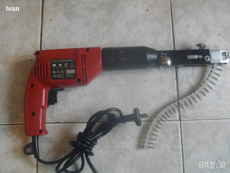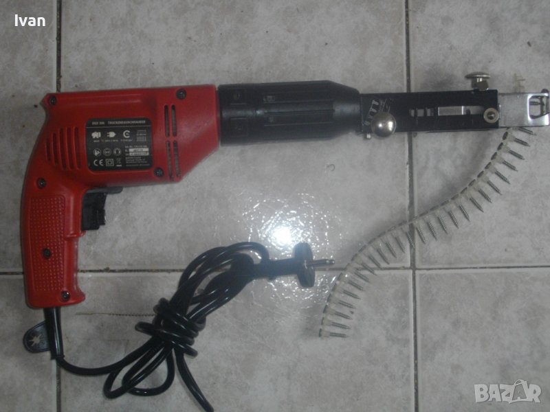 ОПИСАНИЕ на нов немски ел.винтоверт за гипсокартон/машина ел.отвертка за серийно звинтване на винтове от лента - 259 лв. Съвсем нова електрическа машина немска винтоверт за гипсокартон - отвертка за сухостроителство и бормашина-дрелка в едно. Машината в основната си част е бормашина-дрелка. При поставяне на приставката за сериино завинтване на винтове се превръща във винтоверт за гипсокартон и в отвертка за дейности при сухо строитерство.