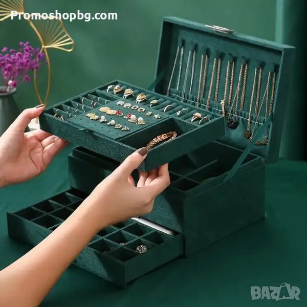 Кутия за бижута в ЗЕЛЕНО или ЧЕРНО - размери 11 x 24,5 x 18 см