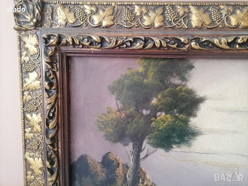 Картината е без дефекти, но впредвид възръста си, има нужда от освежаване, желателно е този, които я вземе да се погрижи и за невероятно красивата рамка, която има напуквания в ъглите (снимал съм ги).