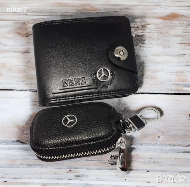 подаръчен комплект естествена кожа ключодържател+портфейл
