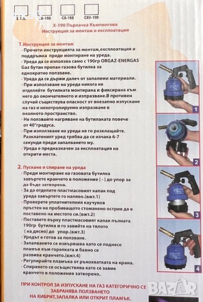 газова горелка метално тяло+Бонус мини бутилка пълнител 190гр къмпинг