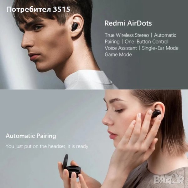 Безжични Bluetooth слушалки Xiaomi Redmi Airdots 2 Earbuds S bluetooth headphones блутут слушалки buds 2 buds 3