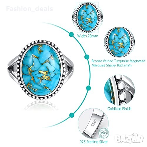 Нов пръстен 16x17мм овална форма син тюркоаз 925 сребро Жени Подарък → Обява 42107737
