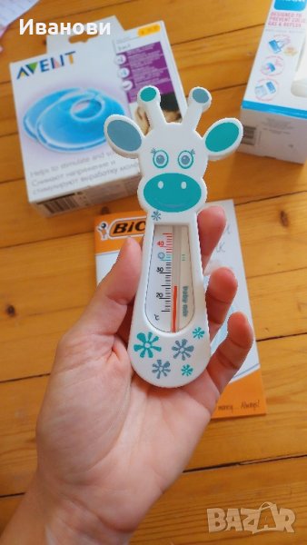 Към тях изпращам като подарък термометър за вана и 2 вида протектори за зърна, които са само пробвани :)