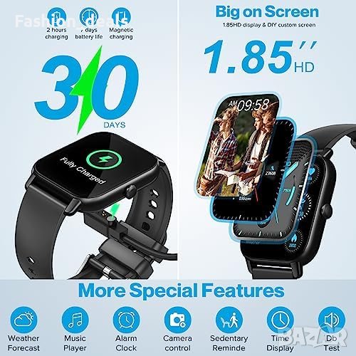 Нов Смарт часовник 1,85 инча Жени Мъже Водоустойчив Android iOS