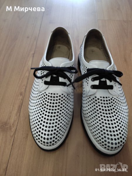 Дамски обувки естествена кожа, бял цвят, номер 39, размер на стелка 24,5 см., обувани два пъти, в перфектно състояние.