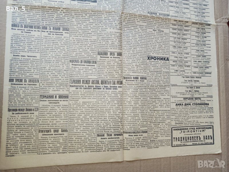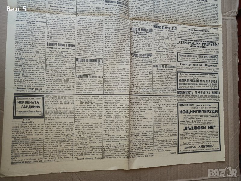Пловдивски вестник , 2 страници с размери 47 / 63 см . Разполагам с общо 19 броя от 1942 и 1943 година , ВСИЧКИТЕ МОГА ДА ДАМ ЗА 100 лева . ИМАМ ОЩЕ БРОЕВЕ ОТ ВЕСТНИКА . 2 стгд