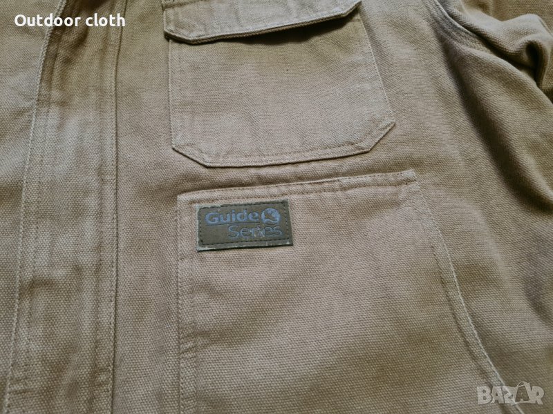 Яке на американската фирма Guide Series.Направено от много здрава памучна материя,но е мека и безшумна.От вътре е с мека поларена подплата и допълнителна тънка изолация,подходящо за есента и зимата. Има два големи долни джоба,два на гърдите и един вътрешен с цип.Много удобна кройка, "свободен гръб ", вътрешни маншети на ръкавите.