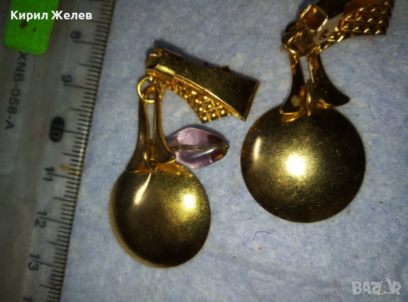 СТАРИ ПОЗЛАТЕНИ РЕТРО КЛИПС ОБЕЦИ от БЛАГОРОДНА СТОМАНА КРИСТАЛ / АМЕТИСТ 38833