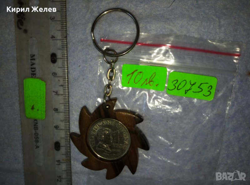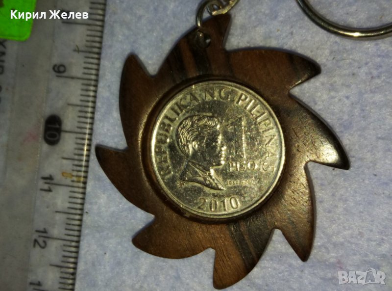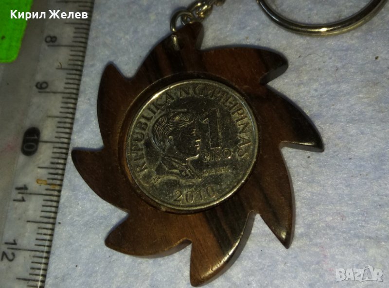 КРАСИВ КЛЮЧОДЪРЖАТЕЛ от САНДАЛОВО ДЪРВО и МОНЕТА - АРТ СУВЕНИР от РЕПУБЛИКА ФИЛИПИНИ 30753