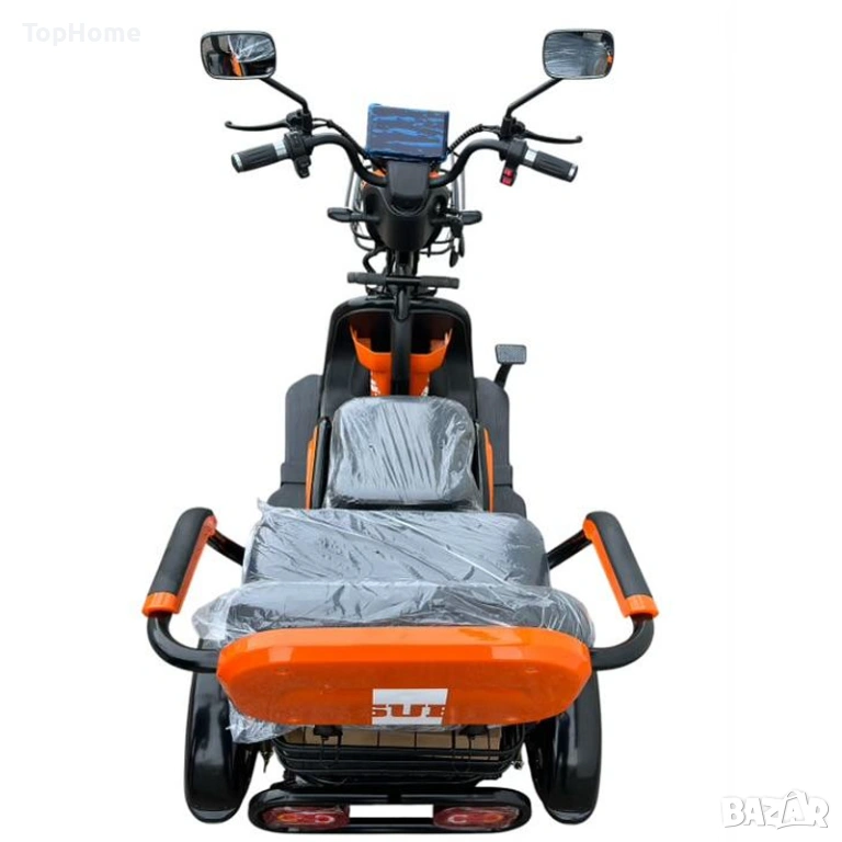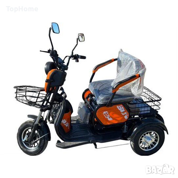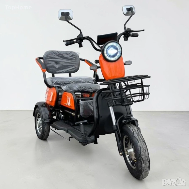 Уникална триместна триколка X1 - без аналог на пазара. Триколката е с дигитално табло, три нива на скоростта, стопове, мигачи и габарити, LED фар. Предна и задна ръчни спирачки. Крачна спирачка. Голям кош за багаж. Триколката е с вградена втора седалка за допълнителен пасажер, като самата седалка се движи във височина, което създава удобство за нисък или висок човек.