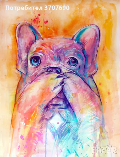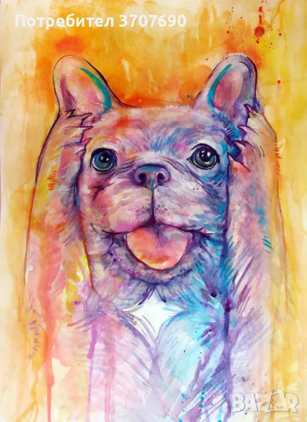 Ако искате акварелен портрет на вашето кученце или котенце, аз ще нарисувам с ярки и свежи цветове перфектния подарък или просто портрет за спомен. Мога да нарисувам за Вас акварелен портрет на всяко животно което пожелаете. Размер 40/50см, цена с рамка 70лв, а можете да изберете между бяла и черна.
