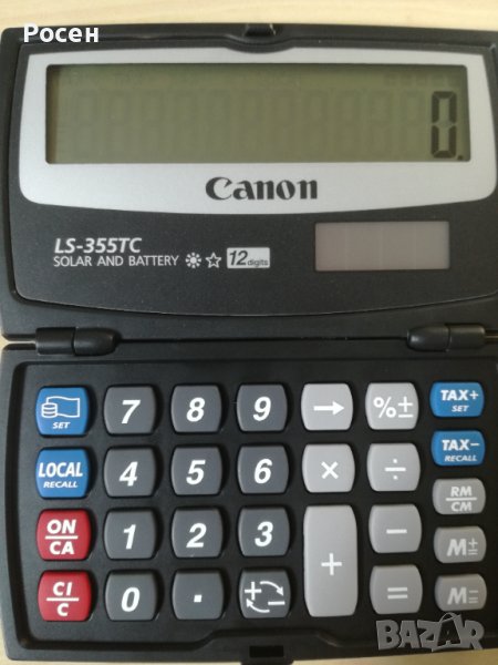 Продавам калкулатор CANON LS-355TC ,с батерия и слънчеви батерии.Калкулаторът е с много и разнообразни функции.Подходящ е както за ученици,така и за по- широка употреба.Компактен и удобен за използване.