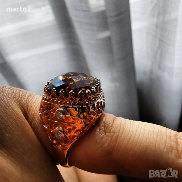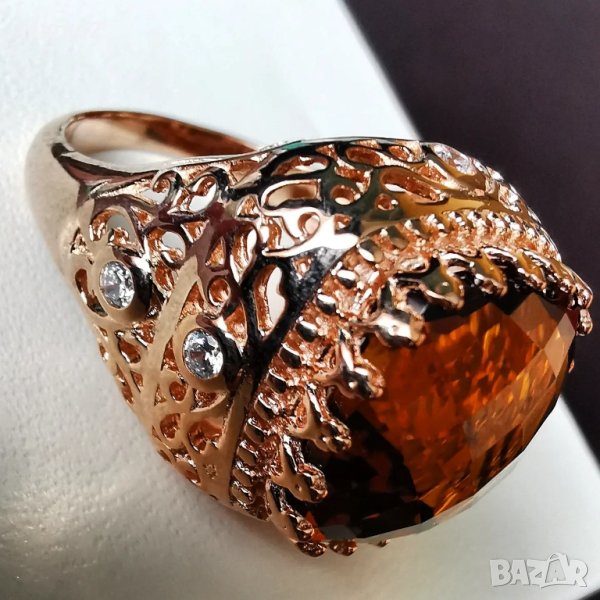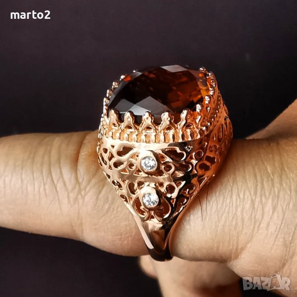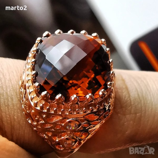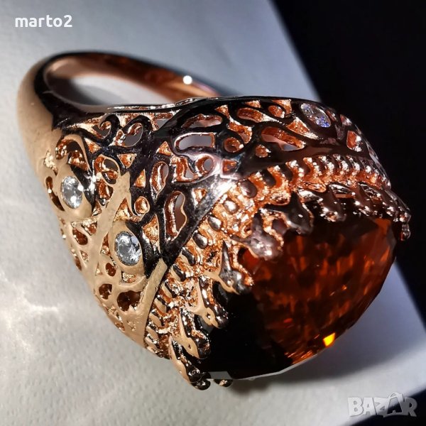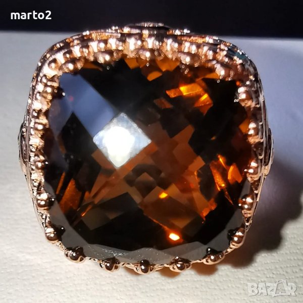 Голям сребърен 925 Пръстен с 14 к. златно и родиево покритие и Натурален Рутил! → Обява 42123796