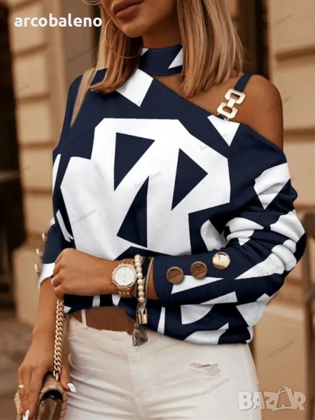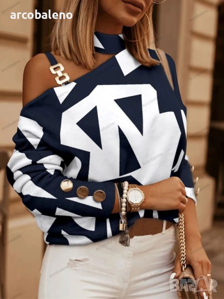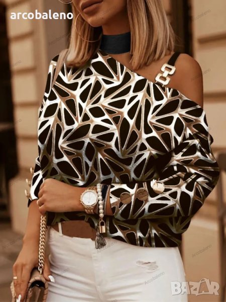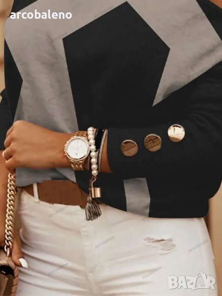 Модна дамска блуза с щампа с геометрични шарки с дълъг ръкав, 4цвята