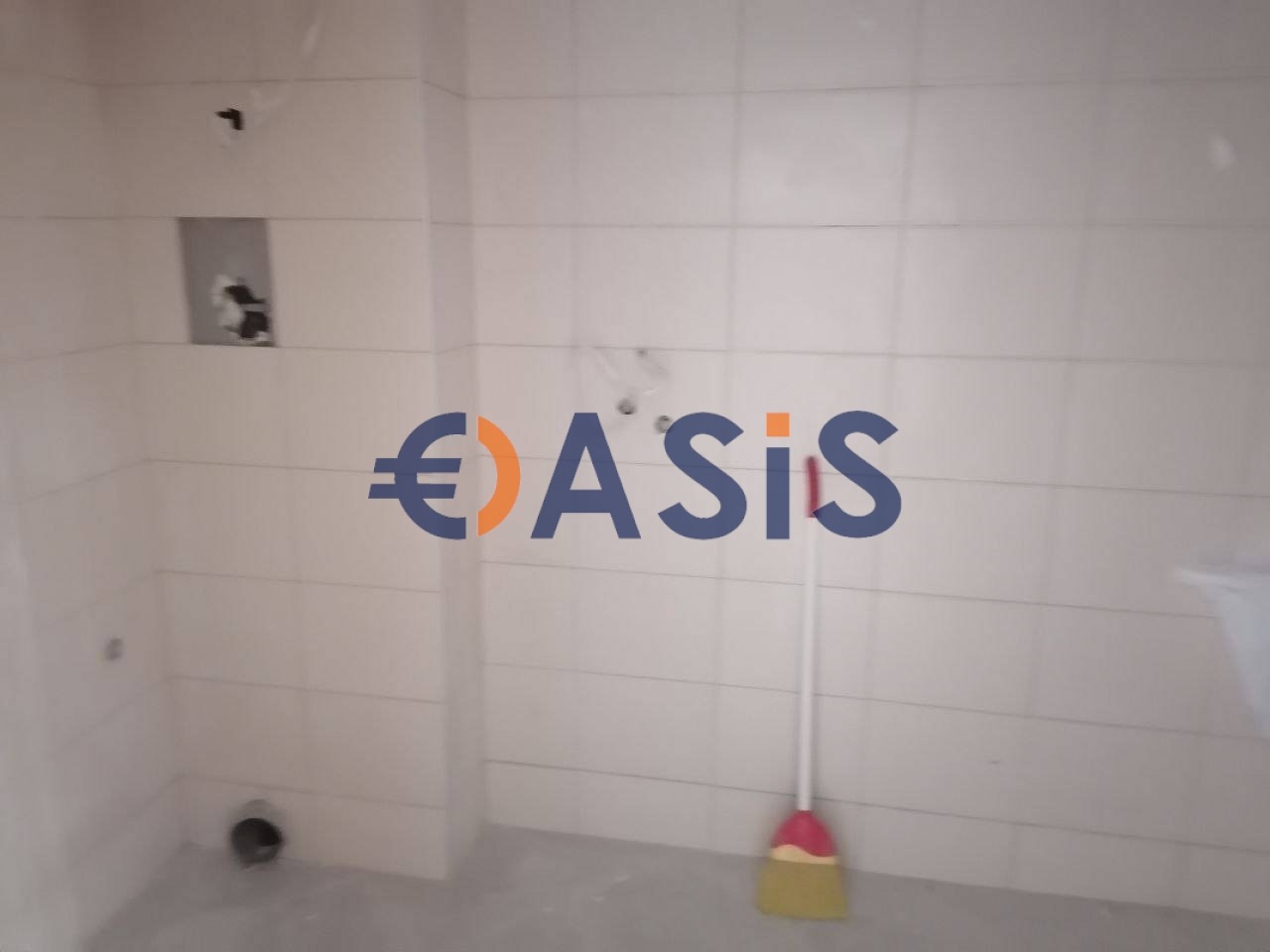 Апартаменти на различни етапи на довършителни работи: някои завършени боядисване на стени, баня с плочки на пода и по стените, други апартаменти изискват повече ремонтни работи.