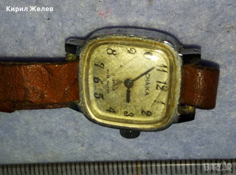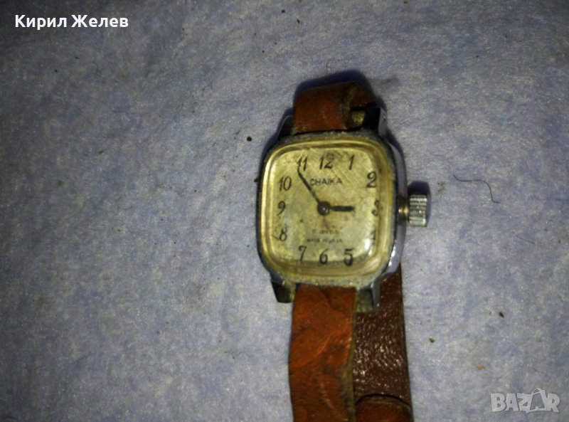 ЧАЙКА 17 КАМЪКА Стар РУСКИ СССР МЕХАНИЧЕН РЯДЪК ДАМСКИ ЧАСОВНИК с КОЖЕНА КАИШКА 38938