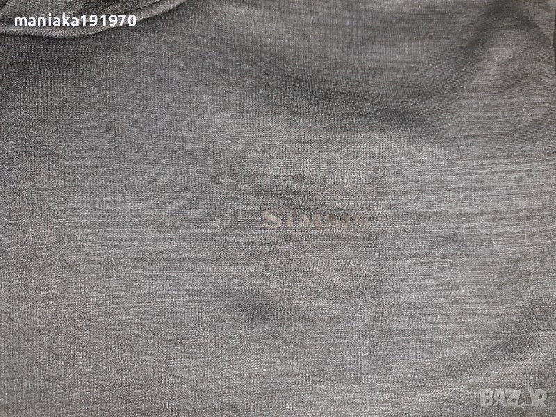 Оригинален мъжки суитшърт на Simms.Размер по етикет US (XL) - отговаря на (XXL) Цвят, тъмно сиво...петната на снимките са от камерата! Състав 100% полиестер .Един голям кенгуру джоб.