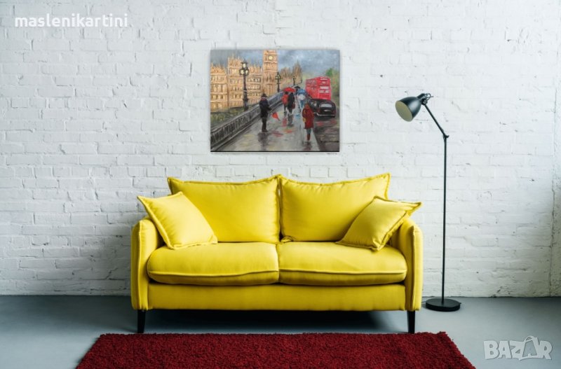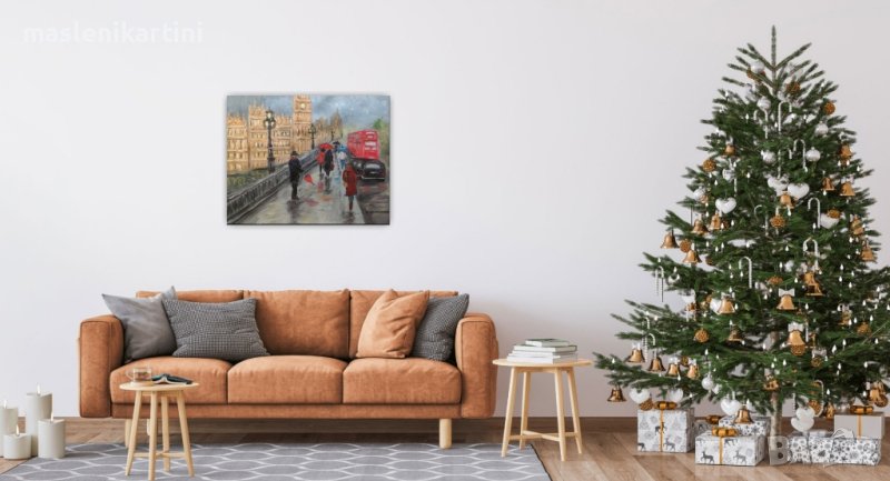 Дъждовен Лондон. Ръчно рисувана картина с маслени бои върху платно. Оригинал. Художник Валентина Костадинова. Размер с рамка 70/60 см, без рамка 60/50 см. Картината ще бъде рамкирана безплатно. Безплатна доставка с наложен платеж и опция преглед до офис на Еконт. Директно от художничката.