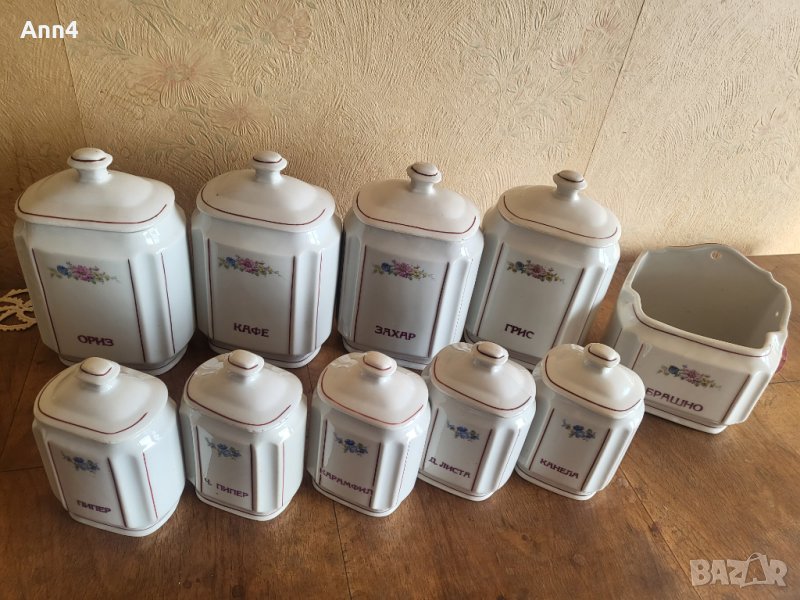 Стар български порцелан буркани за подправки пълен комплект 4бр големи 1 бр голям за брашно 5бр малки.