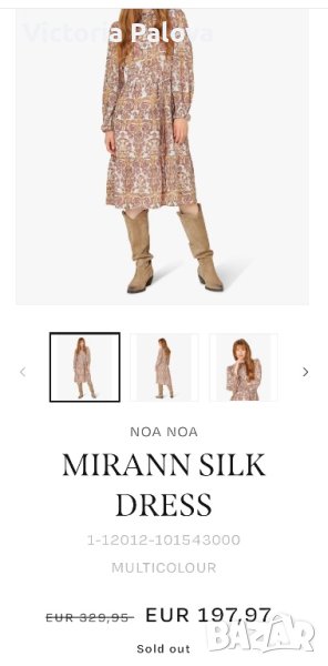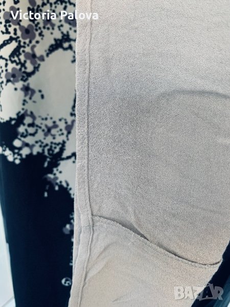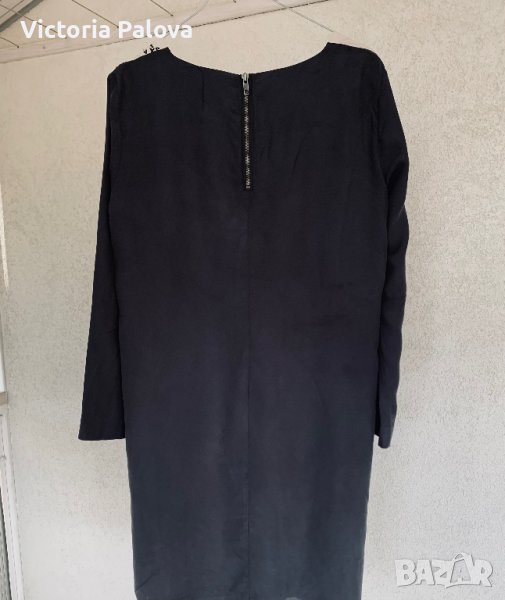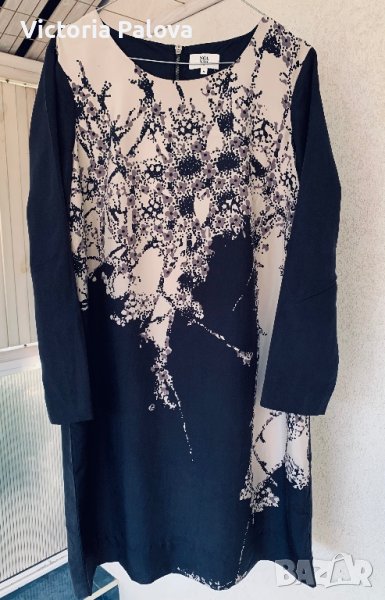 Много красива и елегантна рокля с комплиментарна кройка кокон, подходяща за всички типове фигури.Известен скъп бранд, произвеждащ прекрасни дрехи за жени.Рамо - 42см, ГО - 54-56см, ханш - 60см, дължина - 98см, ръкав - 59см. 100% коприна, подплатата е от мека вискоза.