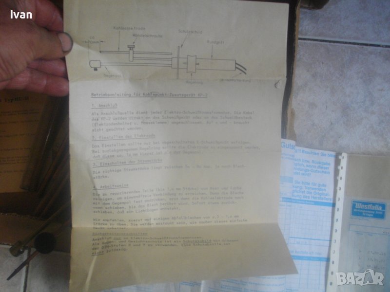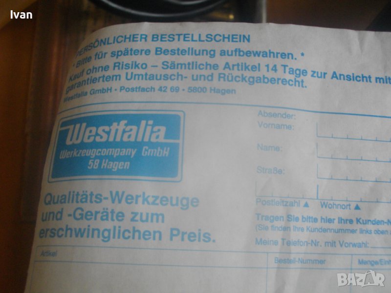 Налична фактурата/документите за закупуването от фирмен специализиран магазин на WESTFALIA в Германия. Година на закупуване според докементите - 1989 г.