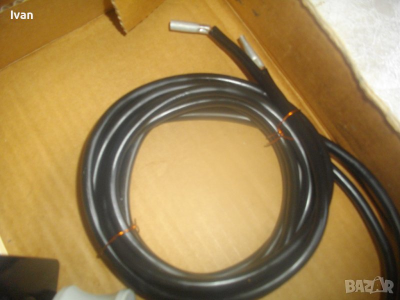 Дъължина на апарата - 36 см. Поставени оригинални 2 кабела с алуминиеви дълги кабелни обувки за скачане с електрожен.