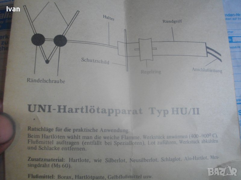 Марка и модел на апарата - UNI - HARTLOTAPPARAT Typ HU 2