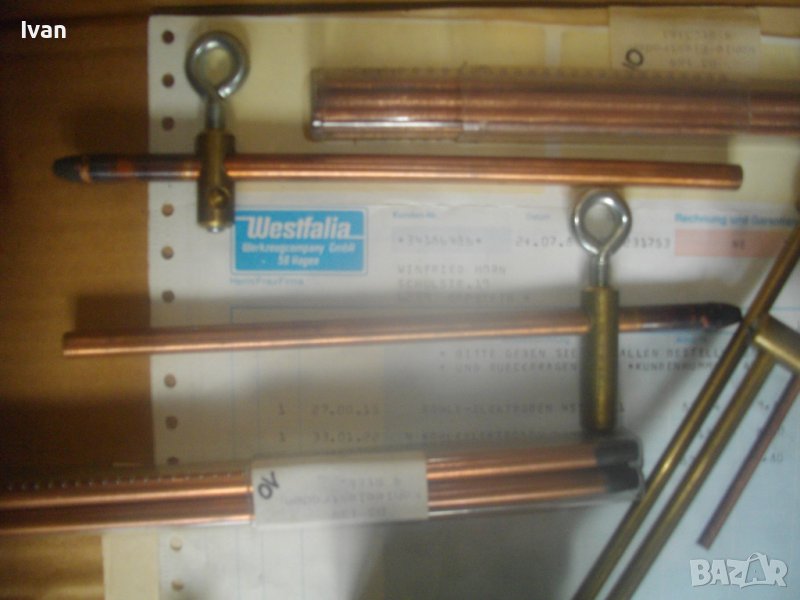 Налични в комплекта 3 бр. бронзови стяги за различни размери електроди.