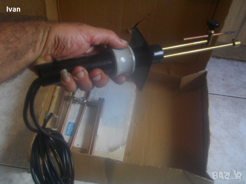 Апарата представлява медна глава с 2 рамена, дръжка от бакелит черен, пръстен ръхохватка, който се придвижва наапред и движи поставения електрод за заваряването.