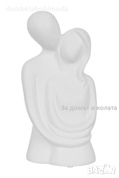Описание - Характеристики Декоративна статуя от бяла керамика с гладка повърхност, изобразяваща двойка, прегърната. Това е минимална декорация с прости линии за всяка стая в къщата. Цвят Бяло Материал на продукта Керамика Дължина x Ширина x Височина 14,5х13,8х16,5см