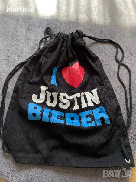 Продавам чисто нова чанта тип мешка с надпис Justin Bieber. Чантата е голяма и може да събере много багаж.
