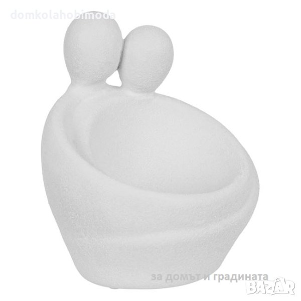 Декоративна статуетка от бяла керамика с гладка повърхност, изобразяваща двойка, седнала прегърната. Това е минимална декорация с прости линии за всяка стая в къщата. Цвят Бяло Материал на продукта Керамика Дължина x Ширина x Височина 14,5х13,8х16,5см