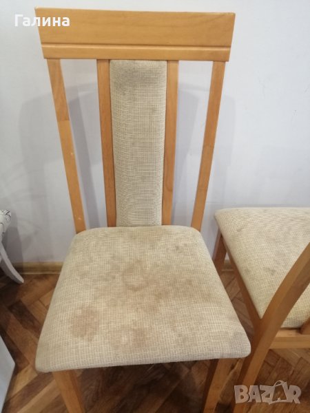 Предлагам два стола, дамаската е захабена, не съм пробвала да я пера. Има и калъфи към тях. Бяха комплект 4 стола, но другите два са с по един счупен крак, при интерес мога и тях да снимам. Цената е за стол.