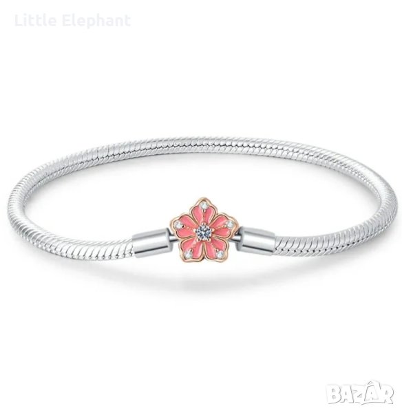 Сребърна гривна Пандора,змийска плетка,"Flower peach",колекция"Flowers"/,19 см/нова → Обява 42139798